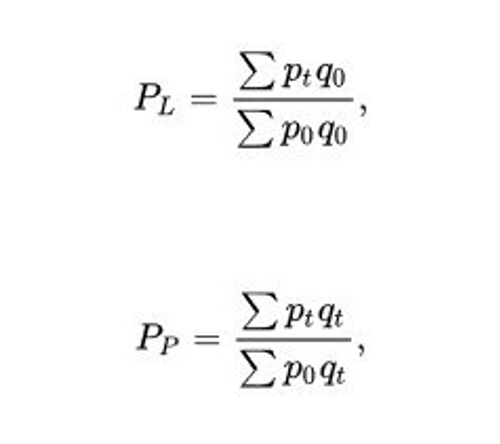 در شاخص لاسپیرز مجموع قیمت هر کالا ضربدر مقدار مصرف آن در سال پایه تقسیم بر مجموع قیمت هر کالا در سال پایه ضربدر مقدار آن در سال پایه محاسبه میشود.