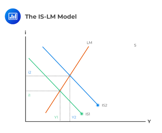 نمودار IS-LM رابطۀ بین تولید یا تولید ناخالص داخلی (GDP) و نرخ بهره را بررسی میکند. کل اقتصاد فقط در دو بازار خلاصه میشود – تولید و پول – و ویژگیهای عرضه و تقاضای آنها اقتصاد را به سمت نقطه تعادل سوق میدهد.